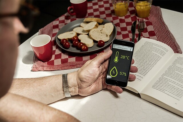 Mit E-Temperature können Sie die Temperatur und Luftfeuchtigkeit innerhalb oder außerhalb Ihres Caravans auf Ihrem Smartphone messen. Da die E-Temperatur drahtlos ist, können Sie sie an jedem beliebigen Ort platzieren. Wählen Sie beispielsweise den Kühlschrank, um sicherzustellen, dass Ihre Speisen nicht verderben. Die Alarmfunktion warnt Sie auf Ihrem Telefon, wenn die Temperatur über oder unter der eingestellten Temperatur liegt.