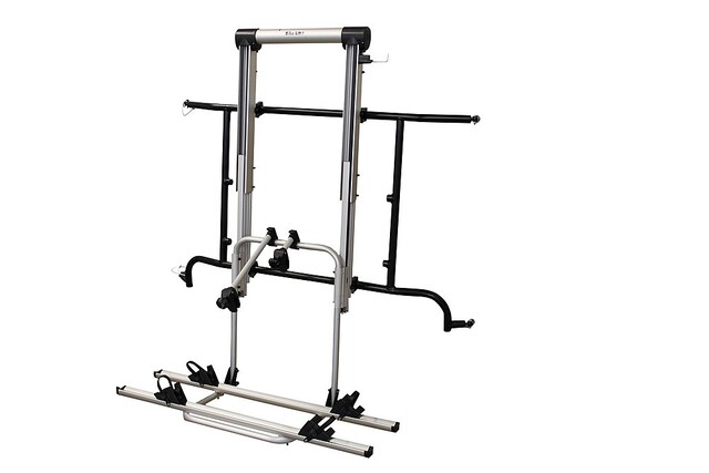 Fahrradträger passend für MB Sprinter ab 06/2018, elektrische Ausführung mit Verstellweg 1000 mm zum Absenken der Fahrräder auf eine komfortable Lade- bzw. Entladehöhe. Pulverbeschichtet schwarz (Elektroantrieb natur eloxiert) zur einfachen Montage an den Türscharnieren. Zum Öffnen der Hecktüren kann der Fahrradträger seitlich nach rechts weggeschwenkt werden.