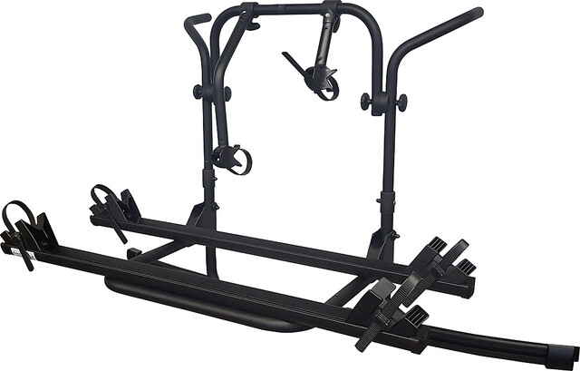 | Lieferumfang | Der vormontierte Grundrahmen besteht aus schwarz pulverbeschichteten Aluminium-Rohr 30 mm Durchmesser, der vormontierte Ausleger aus zwei Aluminium-Fahrradschienen 1250 mm lang mit je 2 Radschalen und 2 Spanngurten, mit zwei Befestigungskrallen |