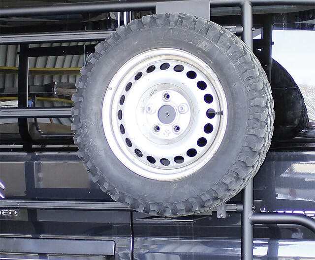 Reserveradhalter für Reserveräder mit Lochkreis 118 – 130 mm, passend für Fahrradträger Adventure Rack und Reling Adventure Roof.