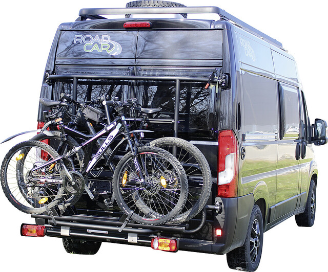 Universell erweiterbar durch optionales Zubehör zur Montage von Fahrrädern, Ski/Snowboards, Surfboard, Transportkiste, Reserverad. Die Montage erfolgt ohne Kleben an den Befestigungspunkten der Türscharniere. Zum Öffnen der Hecktüren kann der Fahrradträger im beladenen Zustand seitlich nach rechts weggeschwenkt werden. Komfortable Beladehöhe von 67 cm.