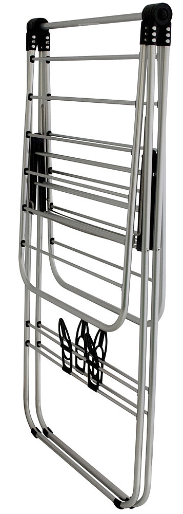 Faltbarer Wäscheständer aus Aluminium mit geringem Packmaß.