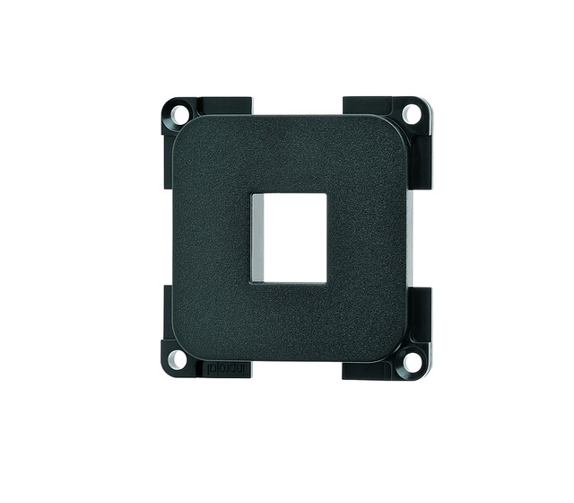 HDMI-Verbinder, 90° gewinkelt für eine geringe Einbautiefe, mit Grundplatte (unmontiert).