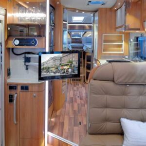 Doppelgelenk mit Arretierung in 0-Position zur Sicherung des Bildschirms, sowie Monitor-Schnellverschlussplatte zum schnellen und einfachen Entfernen des Bildschirms.