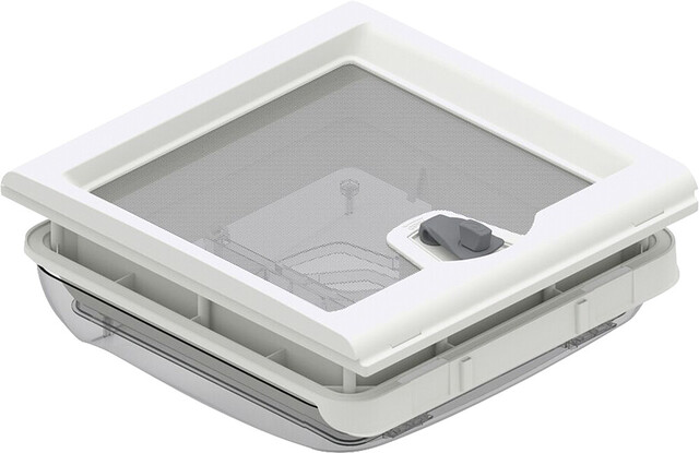 Perfekt für beengte Raumverhältnisse und garantiert reichlich Innenlicht. Keine Montage eines Spoilers notwendig. Mit permanenter Belüftung und robustem Moskitonetz. Dank des Sandwich-Systems müssen keine weiteren Löcher gebohrt werden. Neue Farbe für den Innen- und Außenrahmen der Fiamma-Dachhauben, weiß neutraler und leichter an jede Farbe im Fahrzeuginneren anpassbar.