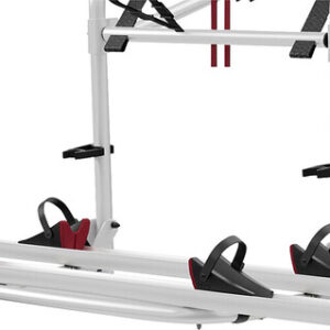 Bei diesem Modell wird die obere Struktur mit doppelten Bohrungen versehen, um das horizontale Stützrohr im Falle einer am Fahrzeug angebrachten Rückfahrkamera verschieben zu können. Ein optionaler unterer Halterungssatz ist erhältlich, um den Fahrradträger an Fahrzeugen zu installieren, die bereits mit unteren und oberen Montageprofilen ausgestattet sind.