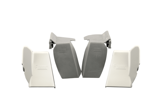Gummiabdeckkappen, welche auf die Enden der Frontblende der Markisen F45 S oder F45 L gesteckt werden. Somit wird bei montiertem Privacy Room ein Wassereintritt an den Ecken vermieden.