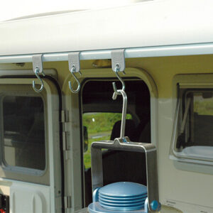 Bestehend aus 6 Haken, welche in die Frontblende der Markise eingezogen werden, um leichte Gegenstände (z.B. Handtücher etc.) aufzuhängen.