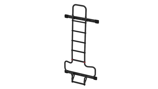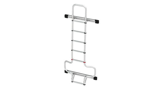 Aus eloxiertem Aluminium für eine sichere Befestigung an der linken Hecktüre des LMC Tourer. Durch die spezielle Formgebung bleibt das Nummernschild frei. Die Befestigungsschienen werden geschraubt oder geklebt. Die Heckleiter zeichnet sich durch die breiten, rutschfesten Stufen für einen sicheren Aufstieg aus. Kombinierbar mit Carry-Bike 200 DJ.