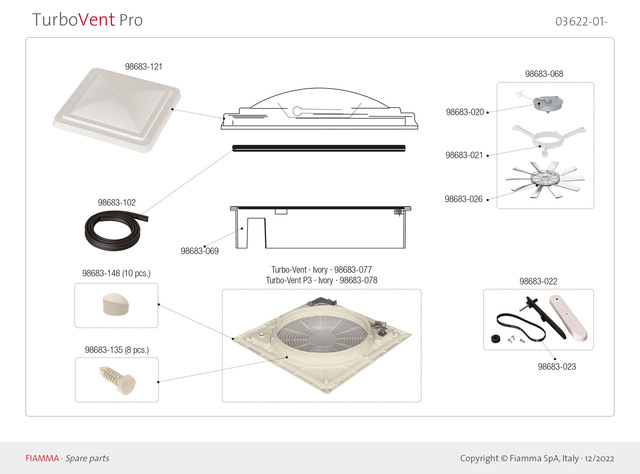 Kit Ventilator inklusive Motor zu Dachhaube Turbo Vent Pro.