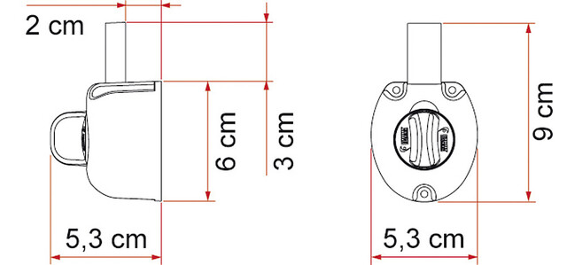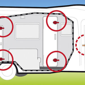 Sicherheitsblock aus Druckgussaluminium zur Anbringung an der Innenseite der Türen von Wohnwagen, Reisemobilen oder Garagentüren. Wird anstelle der serienmäßigen Kunststoffschlösser angebracht, unter Verwendung derselben Bohrungen.