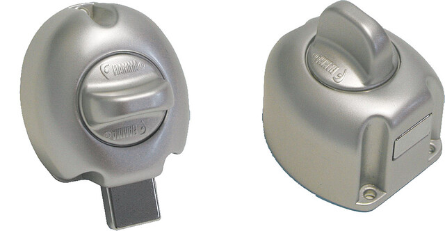 Sicherheitsblock aus Druckgussaluminium zur Anbringung an der Innenseite der Türen von Wohnwagen, Reisemobilen oder Garagentüren. Wird anstelle der serienmäßigen Kunststoffschlösser angebracht, unter Verwendung derselben Bohrungen.