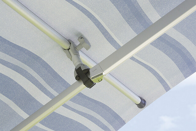 Universelle Alu Spannstange für eine optimale Querspannung der Gelenke und des Markisenttuches. Einfache Montage auf den Gelenkarmen der Markisen (nicht nur Fiamma).
