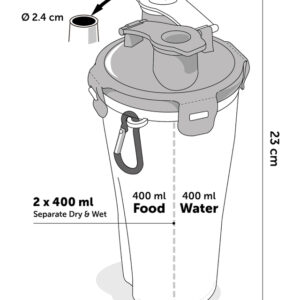 Der Trinka Reisebecher ist perfekt für unterwegs mit Ihrem vierbeinigen Freund. Mit einem praktischen Karabinerhaken befestigen Sie die TPR Futter- und Wassernäpfe am Becher. BPA- und DEHP-frei und mit separteten Fächern für Futter und Wasser. Abnehmbarer Deckel mit Klickschnalle. Die Näpfe sind zusammenklappbar, aber dennoch stabil dank des harten Randes. Leicht zu reinigen.