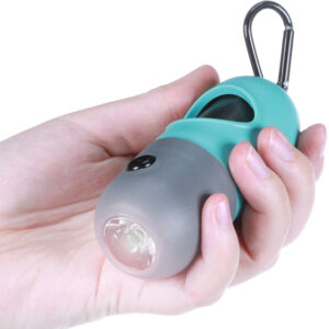 Nie wieder vergessene Hundekotbeutel auf Spaziergängen! Dieser Spender lässt sich einfach mit dem Karabinerhaken an der Leine befestigen und gibt die Beutel mühelos ab. Für nächtliche Spaziergänge, inkl. 3LR44-Batterien und eine energiesparende LED-Lampe (Ein- und Ausschalttaste). Eine Rolle mit 15 Kotbeuteln 320x220mm ist im Lieferumfang enthalten. Spritzwassergeschützt. Schraubverschluss.