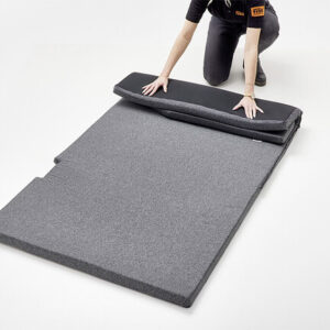 - Polyesterbezug (nach aktuellen Automotiv-Richtlinien) Oberseite + Seiten: Doppeltuch, unversteppt Unterseite: Air-Mesh-Gewebe