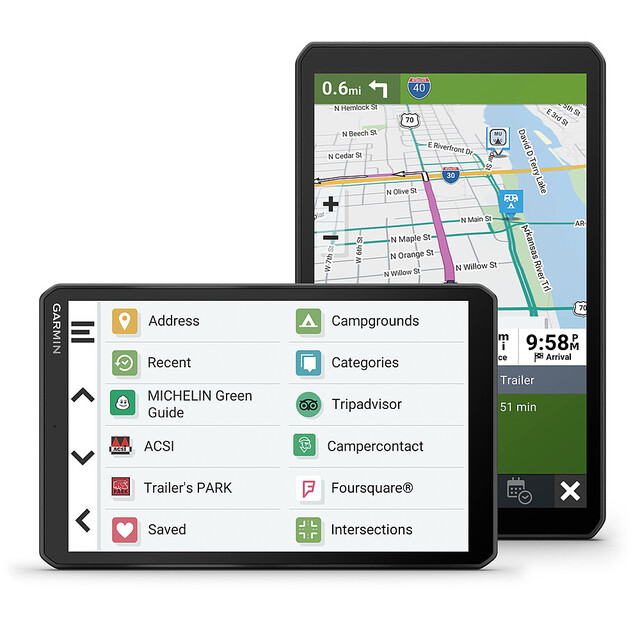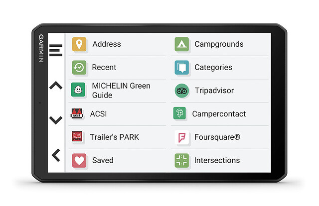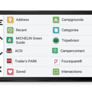 Der Camper 895 verfügt über ein 8 Zoll HD-Touchdisplay sowie über eine Magnethalterung, fahrzeugspezifische Routenführung, updatefähige Strassenkarten (Europa & Südafrika – sowie als Download via Garmin Express: Afrika, Naher Osten, Nord-/Südamerika, Australien und Neuseeland) mit Umweltzonen und die Fahrerassistenz für Hinweise vor scharfen Kurven, Seitenwinden und mehr. Neben der umfangreichen Camper-Datenbank stehen dir auch jederzeit Empfehlungen von TripAdvisor und Michelin zur Verfügung.