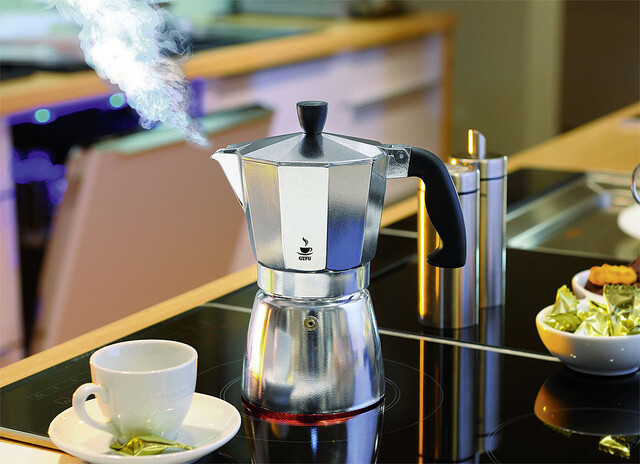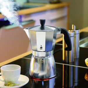 Man nehme Wasser, gemahlenes Espressopulver, den Espressokocher Lucino aus Aluminium und einen Herd. Das Ergebnis – aromatischer Espresso, blitzschnell zubereitet. Aus extrem wärmeleitfähigem Aluminium gefertigt, wird der Espressokocher auf Elektro-, Gas- oder Ceranherd schnell heiß, das kochende Wasser steigt auf, durchdringt das Espressopulver und bringt den köstlichen kleinen Kaffee in die aufgeschraubte Kanne. Der wärmeisolierte Kunststoffgriff des kompakten Espressokochers sorgt für sicheres Einschenken und durch die Ausgießnase geht nicht ein Tröpfchen des italienischen Muntermachers verloren.