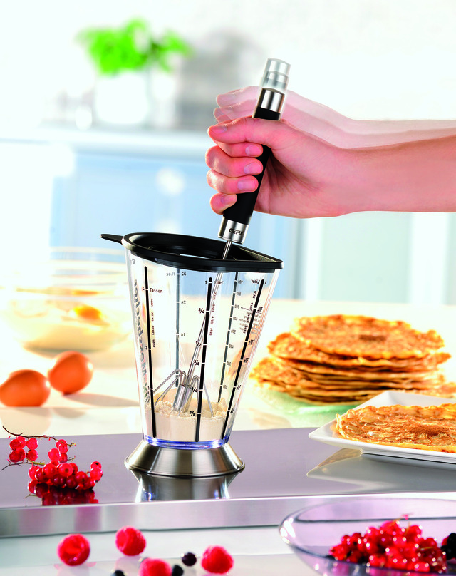 Für alle, die es gerne leicht und cremig mögen, ist der Universal-Quirl genau das Richtige. Denn Milchschaum, Saucen, Desserts, Suppen und vieles mehr lassen sich damit schnell und unkompliziert zubereiten. Einfach den Griff drücken und im Nu mixt der Quirl und überzeugt dabei durch sein zuverlässiges Funktionsprinzip.