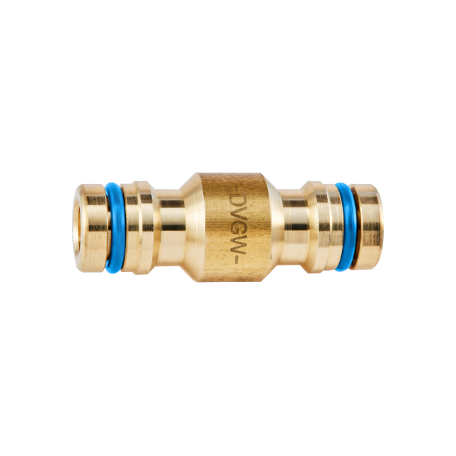 Der GEKA plus Verbindungsstecker Trinkwasser aus bleifreiem Messing mit blauer EPDM-Dichtung bietet eine sichere Verbindung zwischen Trinkwasserschläuchen. Das DVGW-zertifizierte Stecksystem ist einfach zu handhaben, robust und langlebig. Ideal für mobile Anwendungen wie Imbissstände, Camping oder Yachthäfen, gewährleistet es in Kombination mit zertifizierten Trinkwasserschläuchen eine zuverlässige Trinkwasserqualität.