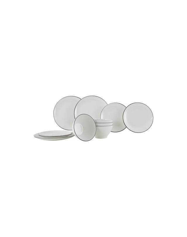 | Besteht aus | 4 Essteller Ø 25 cm, 4 Frühstücksteller Ø 20,5 cm, 4 Schüsseln Ø 14 cm |