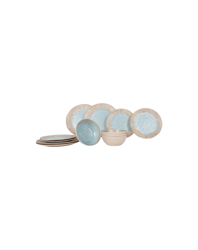 | Besteht aus | 4 Essteller Ø 27,5 cm, 4 Frühstücksteller Ø 22,5 cm, 4 Schüsseln Ø 16 cm |