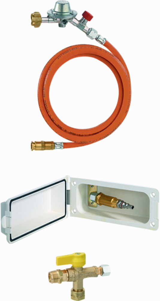 Inklusive Mitteldruckregler (0,5ba/1,5 kg/h) mit Schlauchbruchsicherung