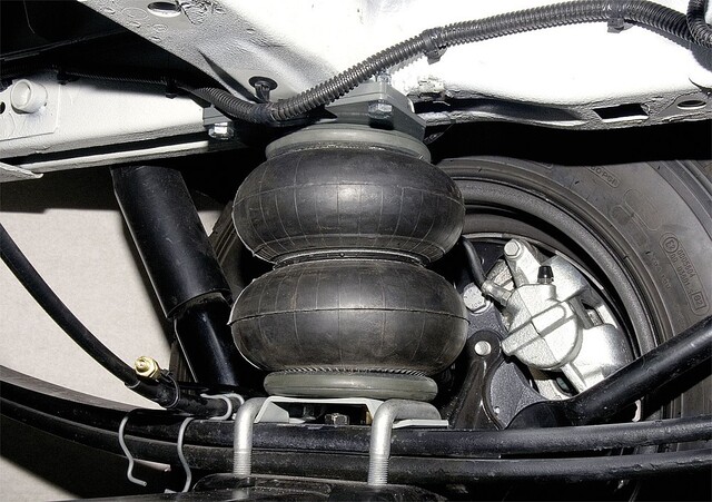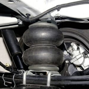 Zusatzluftfeder an der Hinterachse für MB Sprinter VS30 ab 2018 mit Pritschen Fahrgestell. 8″ Doppelfaltenbälgen, 2-Kreis Anlage mit fahrzeugspez. SoftTouch-Bedienteil.