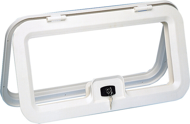 Kunststoffeinbaurahmen mit Schloss. Das Ausschnitt-Teil wird im Rahmen eingesetzt, somit besteht die optische Harmonie zwischen Klappe und Fahrzeugwand. Einbaurahmen lässt sich der Wandstärke anpassen. Für Ausschnittabmessungen und exakten Einbau, liegt Einbauschablone und Einbauanleitung bei.