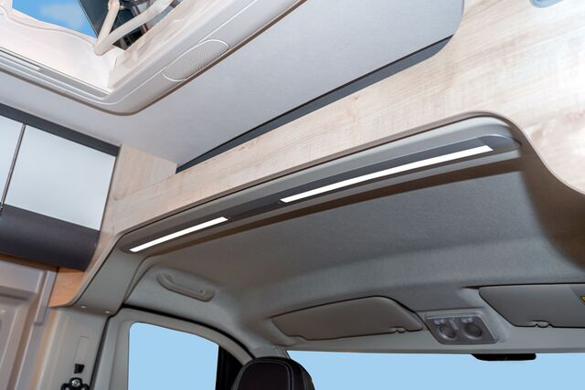 Die Cabiate ist eine Kabinenleuchte, die speziell für die Kabine von Wohnmobilen entwickelt wurde. Diese Leuchte ist eine Mischung aus Funktionalität und innovativem Design für die Modelle Fiat Ducato, Peugeot Boxer und Citroën Jumper von 2006 bis 2023. Die Cabiate bietet zwei unabhängig voneinander bedienbare Lampen, die Ihnen die Flexibilität geben, Ihre Lichtumgebung an Ihre Bedürfnisse anzupassen. Die Cabiate-Kabinenleuchte bietet eine beeindruckende Lichtleistung von 580 Lumen in warmweißem Licht. Sie können die Lichtintensität dimmen und so das perfekte Ambiente für jede Gelegenheit schaffen. Die Touch-Switch-Bedienung vereinfacht die Benutzerfreundlichkeit und verleiht ihr gleichzeitig ein modernes High-Tech-Gefühl. Mit der eingebauten Speicherfunktion wird sogar die zuletzt verwendete Lichteinstellung abgerufen, so dass Sie jedes Mal, wenn Sie in Ihr Fahrzeug einsteigen, ein individuelles Erlebnis haben.