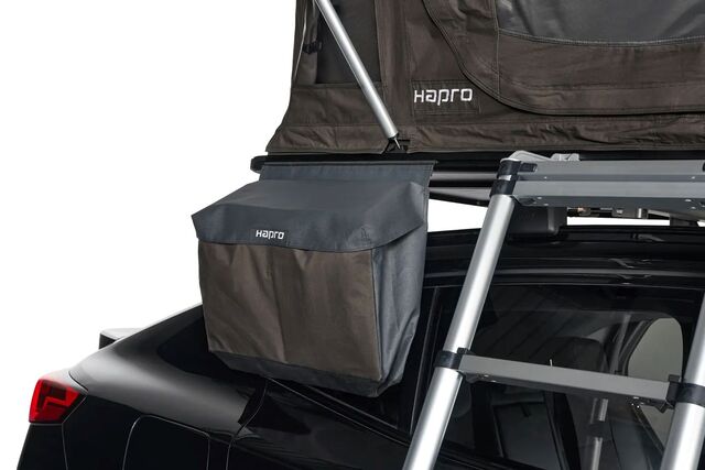 Das Hapro Vista Boot Bag ist ebenso wie das Hapro Vista Dachzelt ein Musterbeispiel für Qualität. Das Boot Bag besteht aus Baumwolle und robustem wasserdichtem Canvas und bietet Platz für zwei Paar Schuhe und Hausschuhe. Das Boot Bag lässt sich sehr einfach in die Montageschienen des Hapro Vista einschieben.
