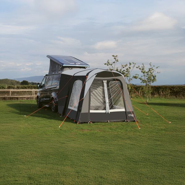 Durch die variable Schleusenlösung eignet sich das Zirkon für gängige SUV, Busse und Vans sowie für Kastenwagen bis etwa 220 cm Höhe. Mit einem Gewicht von nur rund 18 kg präsentiert es sich als echtes Allroundtalent für die Freizeit. Das hochwertige Luftsystem ermöglicht das Aufblasen über ein einziges Ventil, während mehrere Ablassventile dafür sorgen, dass die Luft schnell entweicht. So gelingt der Auf- und Abbau in nur wenigen Minuten. Selbstverständlich bietet auch das Zirkon die typisch großzügige Camptech Stehhöhe.