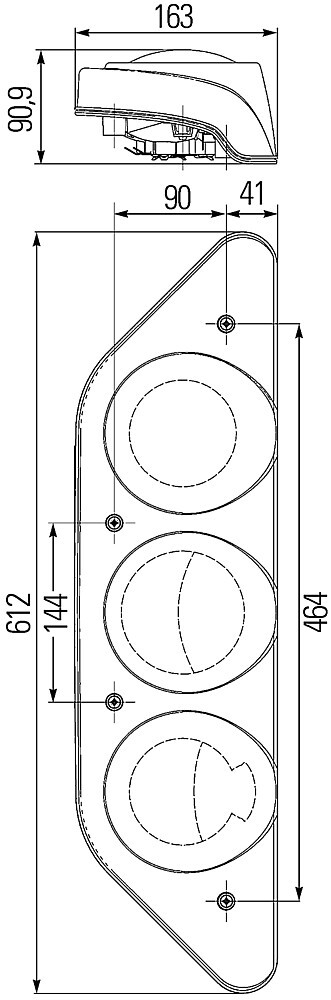 Schluss-Brems-Blink-Nebelschluss-Rückfahr-Seitenmarkierungsrückstrahlerleuchte für den senkrechten Anbau. E4 12677.