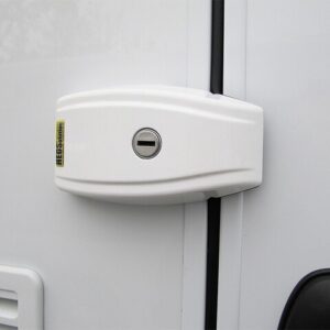 Mit Zusatzplatte für Befestigung am Türrahmen, an Serviceklappen und an der Heckgarage (Wohnmobile und Caravan).