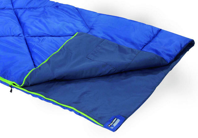 Durch den 2-Wege Reißverschluss lässt sich der Schlafsack auch am Fußende zur Luftzirkulation öffnen oder, rundherum geöffnet, als eine 200 x 160 cm große Decke verwenden. Man kann auch 2 Schlafsäcke miteinander koppeln und in einen gemütlichen Doppelschlafsack verwandeln. Der RV-Schieber ist mit einer ergonomischen Griffmulde versehen. An der Innenseite befindet sich eine nützliche Innentasche mit Klettverschluss.
