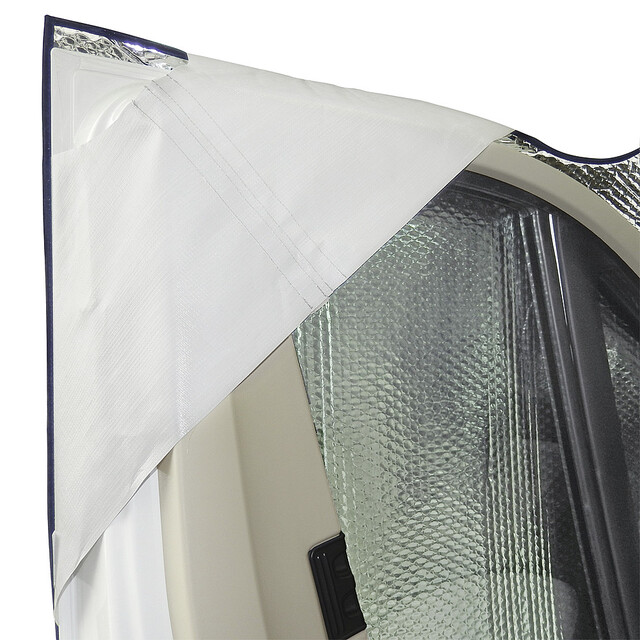 Im Winter isolieren Sie gegen Kälte, im Sommer sind sie eine wirkungsvolle Möglichkeit, damit die Sonnenstrahlen draußen bleiben und nicht durch das Scheibenglas eindringen und den Innenraum aufheizen. Bei schönem Wetter könen Sie die Front öffnen und die Natur oder das Geschehen außerhalb des Fahrzeugs beobachten. Hergestellt aus einer wetterfesten Thermofolie mit beidseitig alubedampfter Polyesterfolie, die UV-stabilisiert worden ist.