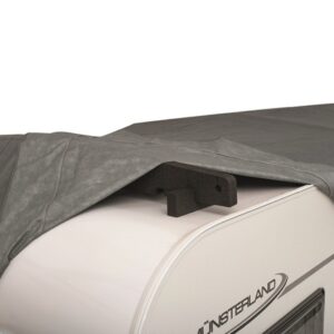 Universelle Dachschutzplane aus 3-lagigen SFS-3 Nonwoven Material für Reisemobile und Wohnwagen die sich durch eine gute Reißfestigkeit und geringes Gewicht auszeichnet. Sie verfügt ringsum über dreiecksförmige Laschen zum Abspannen.