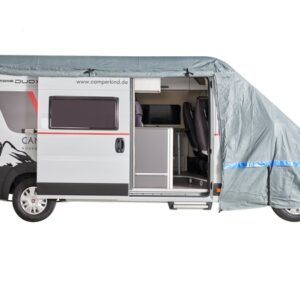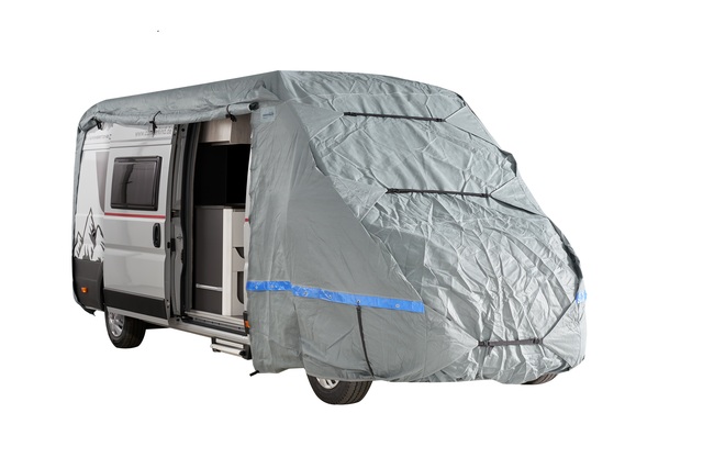 Die Serie „WINTERTIME“ der Hindermann Schutzhüllen ist aus einem atmungsaktiven 3-lagigen SFS-3 NONWOVEN-Material hergestellt und zeichnet sich durch eine gute Reißfestigkeit und geringes Gewicht aus. Jede Schutzhülle verfügt über 4 Reißverschlüsse, die (geöffnet) das Überziehen sowie Abnehmen erleichtern und einen Zugang zur Eingangstür bzw. Staukästen auf der linken Fahrzeugseite ermöglichen. Alle Schutzhüllen verfügen beidseitig über eine Ösenleiste sowie Spannlaschen an Front und Heckseite. Das Spannmaterial gehört zum serienmäßigen Lieferumfang, ebenfalls ein großzügig bemessener Aufbewahrungssack.