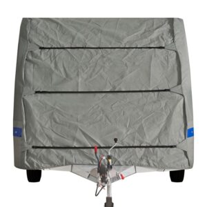 Für Reisemobile gibt es alleine 3 Grundformen die den unterschiedlichen Konturen, Aufbaubreiten und Aufbauhöhen von Integrierten, Kompaktintegrierten, Teilintegrierten sowie Alkovenfahrzeugen gerecht werden. Jede Schutzhülle verfügt über 4 Reißverschlüsse die (geöffnet) das Überziehen sowie Abnehmen erleichtern und einen Zugang zur Eingangstür bzw. Staukästen auf der linken Fahrzeugseite ermöglichen. Alle Schutzhüllen verfügen beidseitig über eine Ösenleiste sowie Spannlaschen an Front und Heckseite.