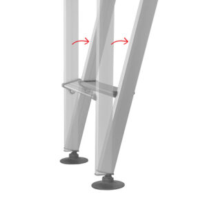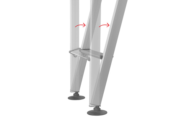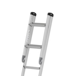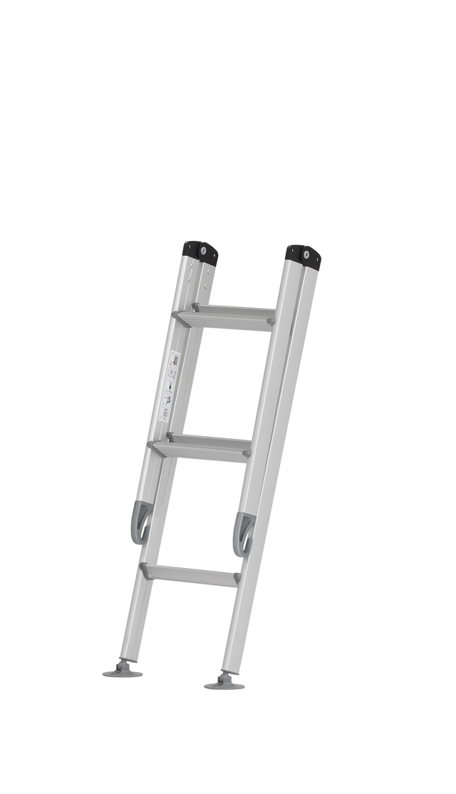 Klappleiter, Länge ausgeklappt: 153 cm, eingeklappt: 91 cm. Inkl. Einhängehaken, 2 Einhängelager, Tellerfüße. Für eine senkrechte Höhe von 148 cm.
