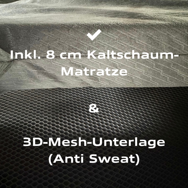 - 1 × 8 cm Kaltschaum-/Memory-Foam-Matratze (2 Stk. für 220 cm Dachzelt)