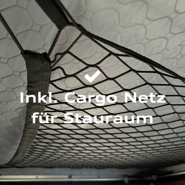 Unter dem Dach der Hartschale findest du ein Staunetz, das reichlich Stauraum für diverse Utensilien wie Schlafsack oder Decke bietet. Eine zusätzliche Tasche für Handy, Taschenlampe und Co. kannst du beliebig an den Wänden des Themis Hartschalen-Dachzeltes mit Klettverschluss befestigen. Besonders nützlich ist die Tasche außen am Zelt, die sich perfekt zur Aufbewahrung deiner schmutzigen Schuhe eignet – so bleibt das Innere deines Zeltes stets sauber.