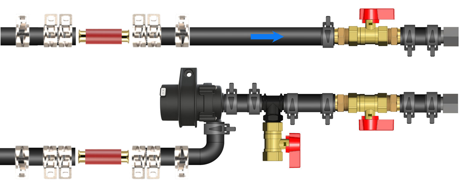 Hydronik Betriebsübersicht: Das Glykol ist an beiden abgebildeten Anschlüssen des beheizten Glykoltanks verfügbar. Der Touchscreen steuert das EIN-Signal basierend auf den vom Kunden festgelegten Sollwerten für die Raumtemperatur für die Hydronikzone. Die Heizung gibt dann das Einschaltsignal an die externe Pumpe und/oder die Wärmetauscher für den Betrieb weiter.