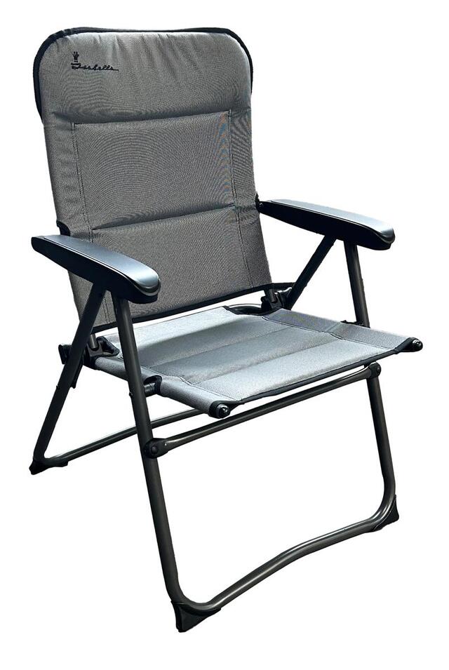 Der Nanna Stuhl ist ein leichter und bequemer Campingstuhl, der sich ideal für das Vorzelt, die Terrasse oder das Leben rund um Ihren Camp-let eignet. Dank seiner kompakten Größe und des geringen Gewichts ist er einfach mitzunehmen – ob zum Morgenkaffee vor dem Vorzelt oder zur Entspannung unter freiem Himmel. Die Rückenlehne ist in 3 Positionen verstellbar, sodass Sie stets eine bequeme Sitzposition finden – egal, ob Sie essen, lesen oder ein Nickerchen in der Sonne machen möchten. Der Stuhl trägt bis zu 120 kg. Die Sitzfläche ist mit 1,5 cm Schaumstoff gepolstert und mit strapazierfähigem Polyester mit PVC-Beschichtung bezogen, was für hohen Sitzkomfort sorgt und die Reinigung erleichtert. Das pulverbeschichtete Aluminiumgestell (Ø25 mm) verleiht dem Stuhl Stabilität und macht ihn gleichzeitig einfach zu handhaben und zusammenzuklappen. Der Nanna Stuhl ist in der Farbe Light Grey erhältlich – ein moderner und schlichter Farbton, der zu den meisten Campingumgebungen passt.