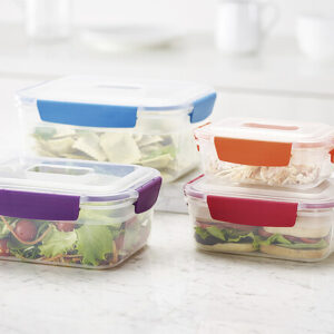 Dosen für die Essensaufbewahrung nehmen häufig viel Platz in den Küchenschränken ein und die Suche nach dem passenden Deckel für die Dose kann schnell zeit- und nervenaufreibend werden. Die Nest Lock Produktlinie von Joseph Joseph hat für dieses Problem die ultimative Lösung gefunden. Aufgrund ihres einzigartigen Designs lassen sich die Dosen mitsamt passenden Deckeln ineinander stapeln, wodurch sie kaum Platz einnehmen. Weiterhin wird durch die Farbcodierungen an Dose und Deckel die Zuuordnung zueinander ein Kinderspiel. Alle Produkte der Nest Lock Linie sind fest verschließbar, luftdicht und auslaufsicher. Spülmaschinen – und Mikrowellengeeignet.