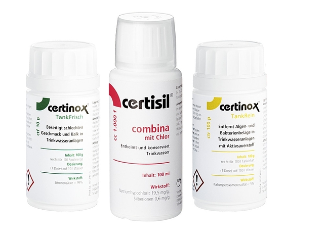 Dieses Komplettpaket wurde zur Reinigung und Desinfektion von Trinkwassersystemen zusammengestellt. certinox zur Reinigung und certisil zur Desinfektion sind in ihrer Wirkung genau aufeinander abgestimmt. Pflegeset für Wasseranlagen für Tanks bis 100 l.