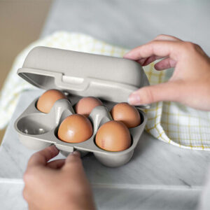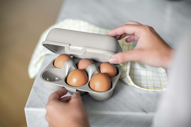 Die Eierbox EGGS TO GO aus thermoplastischem Kunststoff für das sichere Transportieren der Eier. Mit praktischem Clipverschluss, stoßfest und stapelbar.