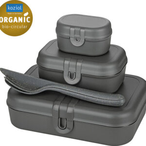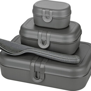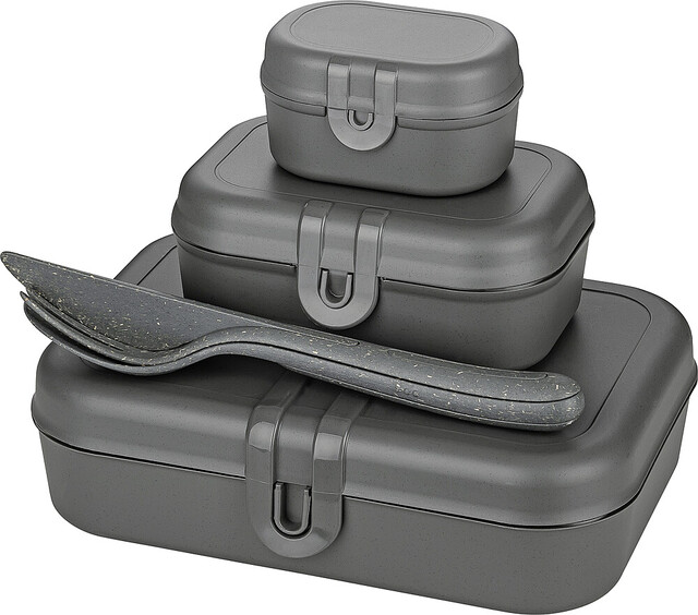 koziol Lunchbox + Besteck-Set PASCAL READY 4er-Set Farbe nature ash grey