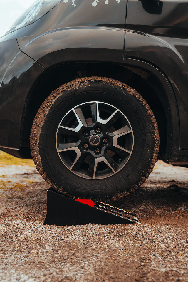 Der technische Fokus auf Praktikabilität zeichnet Level9 aus. Die Unterlegkeile aus strapazierfähigem Polypropylen sind nur 55 cm lang und bewältigen dennoch Höhenunterschiede von bis zu 18 cm. Sie sind kompakt genug, um sie leicht im Wohnmobil zu verstauen, und stark genug, um den schweren Lasten von Freizeitfahrzeugen standzuhalten.
