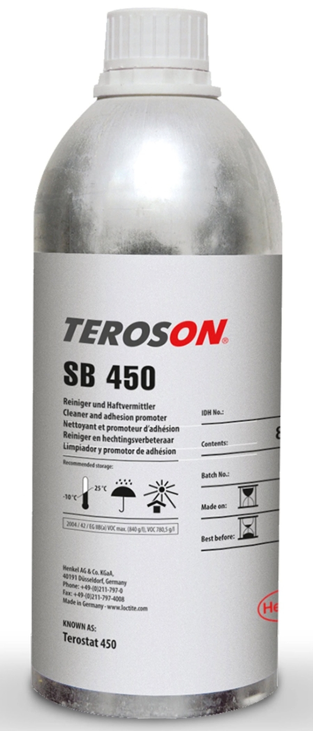 TEROSON SB 450 ist eine alkoholische Lösung zur Reinigung von nicht saugenden Untergründen. Es enthält aktive Substanzen, welche die Haftung von elastischen Kleb- und Dichtstoffen auf kritischen Untergründen verbessern.